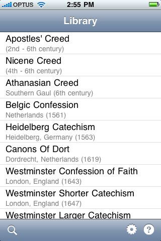 The app features the same set of creeds and standards as iReformed. (Which also means the app uses the US revisions of the Confession.)