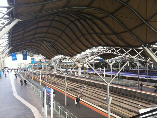 1. Southern Cross (or Spencer Street) is a pretty impressive building. They borrowed the idea of the curvy roof from Germany when it was designed to mount solar panels on. Not only was that not done, but there is now storm water retention, so the trains are washed with drinking water. Smart, eh?