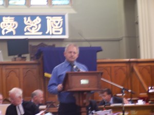 Dr Stoker spoke first and at the greatest length. He was thankful to be here. Members and ministers who have settled here, and those from here with whom they have talked, have helpted him recognise affinity in the gospel and the Lord.