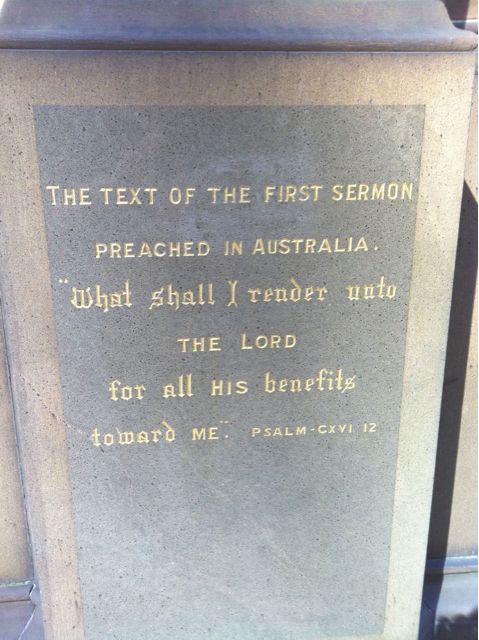 The Site Of Australia’s First Church Building Gary Ware no comments September 17, 2010 The text of the first sermon, based on Psalm 116:12 ‘What shall I render unto the Lord for all His benefits toward me’. (Cnr Castlereigh and Hunter Sts) Share this: Click to share on Facebook (Opens in new window) Facebook Click to share on X (Opens in new window) X Click to share on Reddit (Opens in new window) Reddit Click to email a link to a friend (Opens in new window) Email Click to print (Opens in new window) Print Like Loading... Related