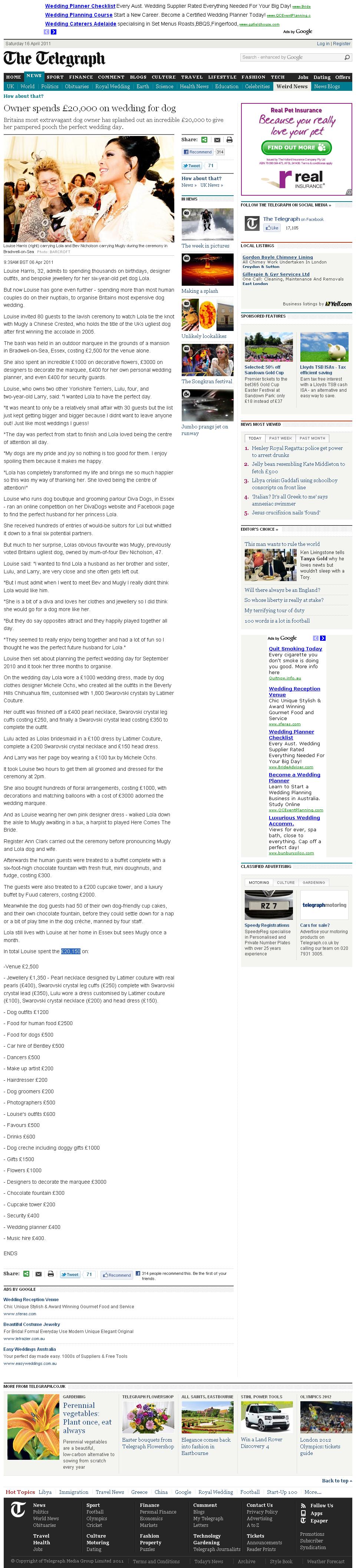Here’s an article on the UK Telegraph website about a woman who spent £20,150 on a wedding for her dog.