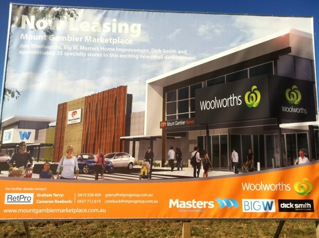 What does the sign say? Mount Gambier is getting a shopping center that is not in the central business district of town. That is something different, as well as something new. It will certainly move a significant amount of the town’s commercial activity to the area of town where our church’s building is located.