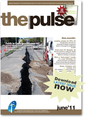 The June 2011 Presbyterian Pulse (Monthly Magazine of the Presbyterian Church In the State of New South Wales and the Australian Capital Territory) has been posted for pdf download.