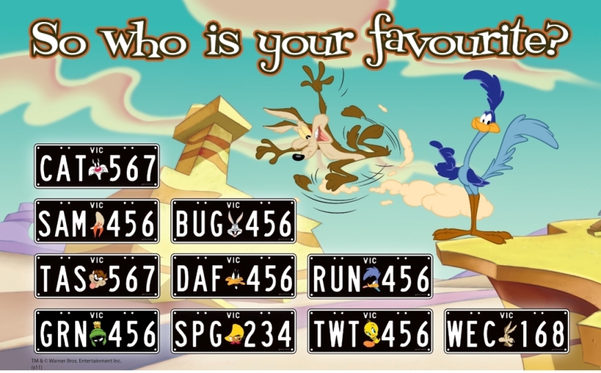 The motor vehicle registration department in Victoria, Australia has announced custom car number plates featuring characters from DC Comics and Looney Tunes cartoons.
