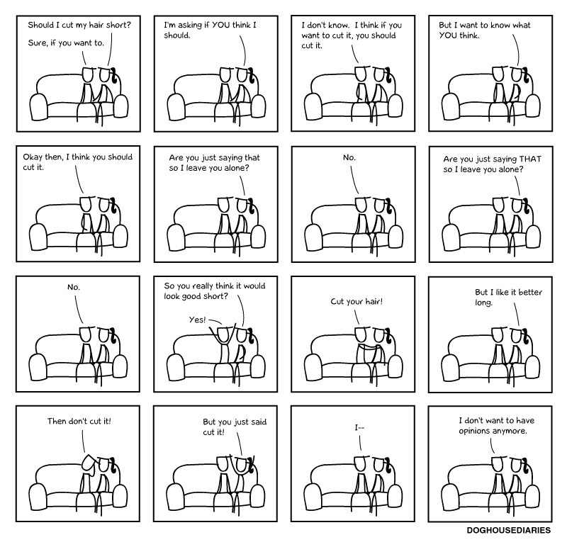 A Common Discussion Pattern Gary Ware no comments December 15, 2011 I have this discussion all the time. From Doghouse Diaries. HT: Stephen. Share this: Click to share on Facebook (Opens in new window) Facebook Click to share on X (Opens in new window) X Click to share on Reddit (Opens in new window) Reddit Click to email a link to a friend (Opens in new window) Email Click to print (Opens in new window) Print Like Loading... Related
