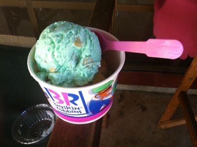 Followed by a respectful interval and then two scoops of Baskin & Robbins: pistachio almond and some sort of almond mocha fudge.