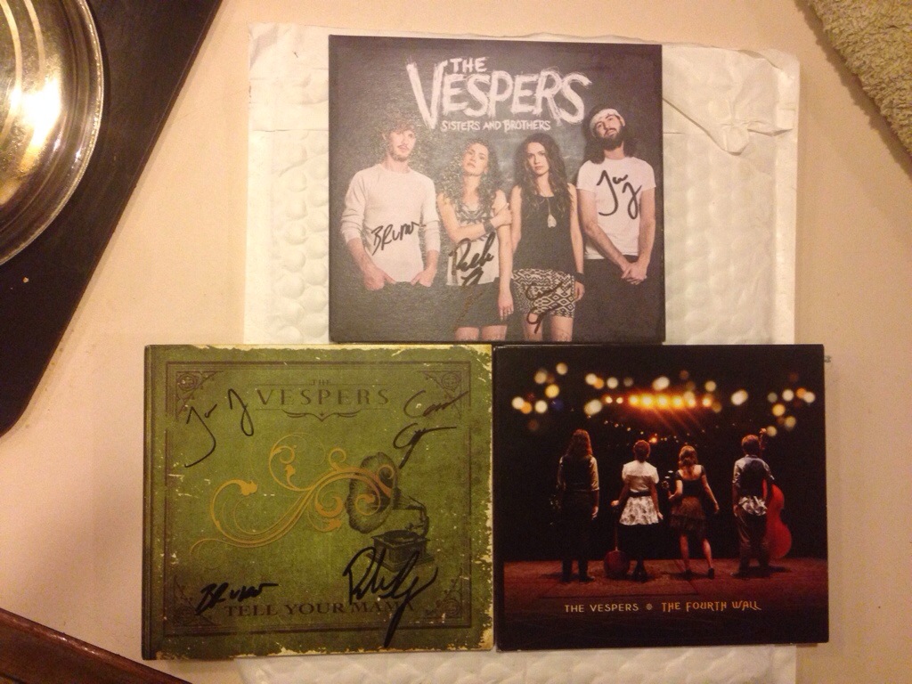The Vespers ‘Sisters and Brothers’ Arrives With Some Friends Gary Ware no comments June 26, 2014 My Kickstarter reward for backing The Vespers third album arrived today. Autographed copies of all three of their albums, ‘Tell Your Mama’, ‘The Fourth Wall’, and ‘Sisters and Brothers’. Share this: Click to share on Facebook (Opens in new window) Facebook Click to share on X (Opens in new window) X Click to share on Reddit (Opens in new window) Reddit Click to email a link to a friend (Opens in new window) Email Click to print (Opens in new window) Print Like Loading... Related