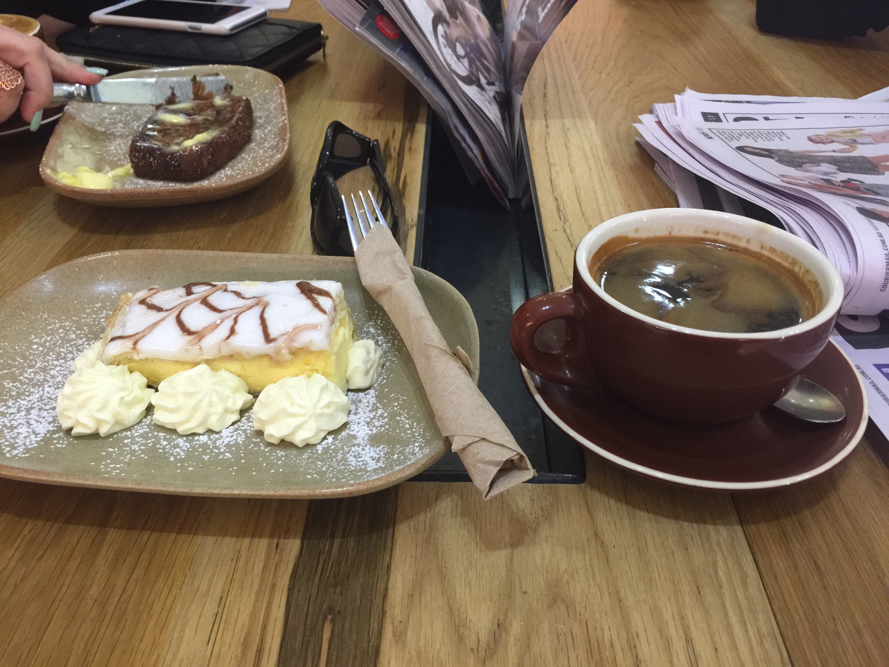 Another Day, Another Vanilla Slice Gary Ware 1 comment July 4, 2015 The Foundry in Maryborough. Very sticky icing, luscious vanilla custard, firm non-crisp layery pastry. The cream just cut through the sweetness of the icing to pleasant effect. Share this: Click to share on Facebook (Opens in new window) Facebook Click to share on X (Opens in new window) X Click to share on Reddit (Opens in new window) Reddit Click to email a link to a friend (Opens in new window) Email Click to print (Opens in new window) Print Like Loading... Related