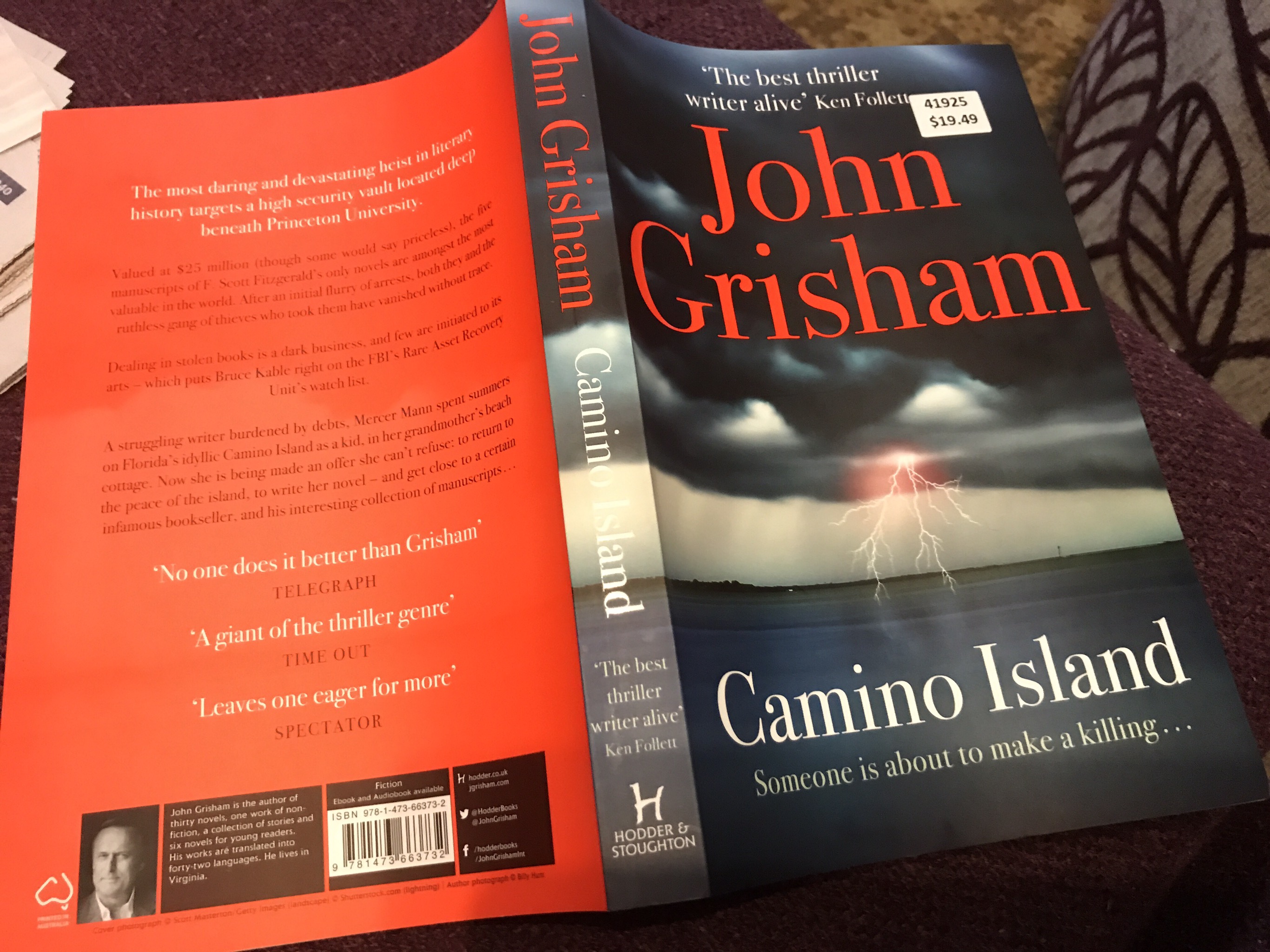 Starting with something light, Camino Island by John Grisham.