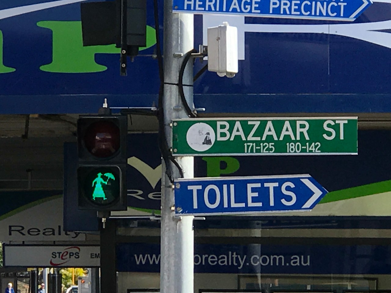 Bazaar Street, Maryborough (QLD) has Mary Poppins pedestrian crossing lights in honor of author P.L. Travers, who was born in the town.