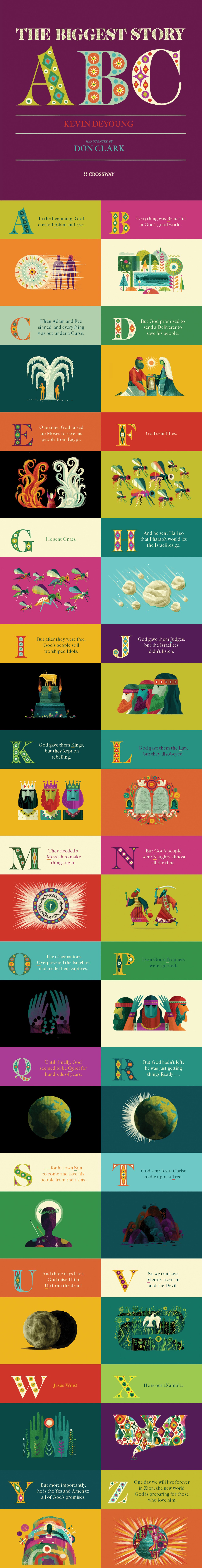 The Biggest Story ABC Book is an adaption by Kevin DeYoung and Don Clark of their children’s book, The Biggest Story.