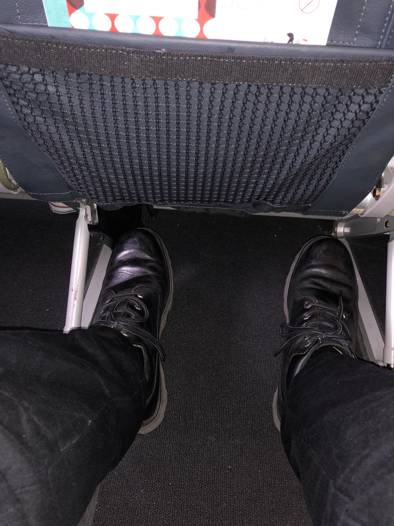 Sitting in exit row, with reserved overhead luggage space on full flight.