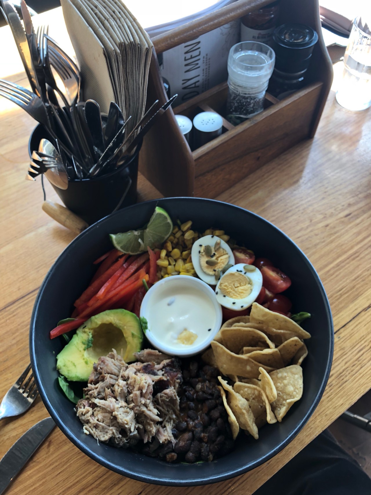 My lunch at Hervey Bay eatery Dan and Steph’s today was an excellent Mexican Bowl.