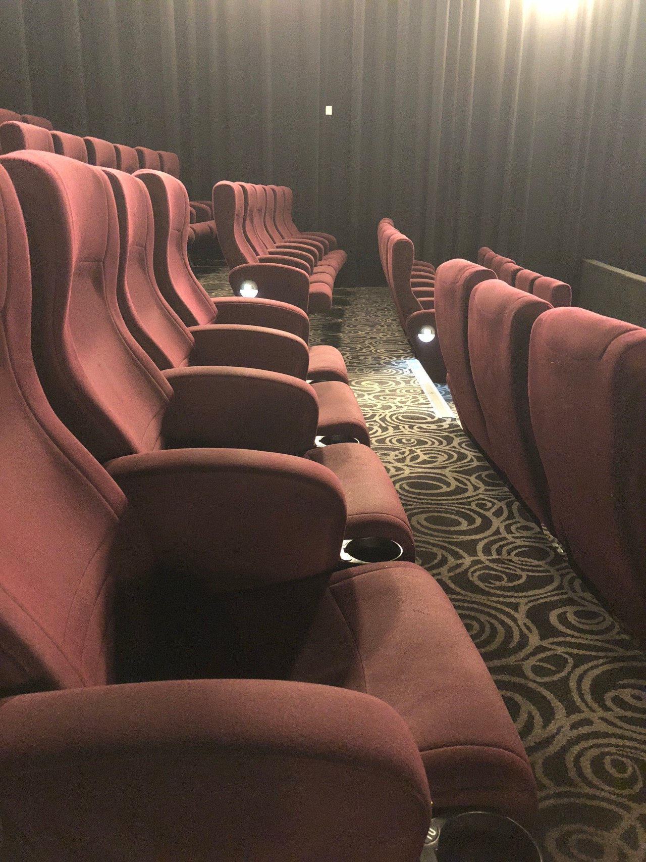 I feel like a bumkin geeking out over the standard of the stadium style seating in these places.