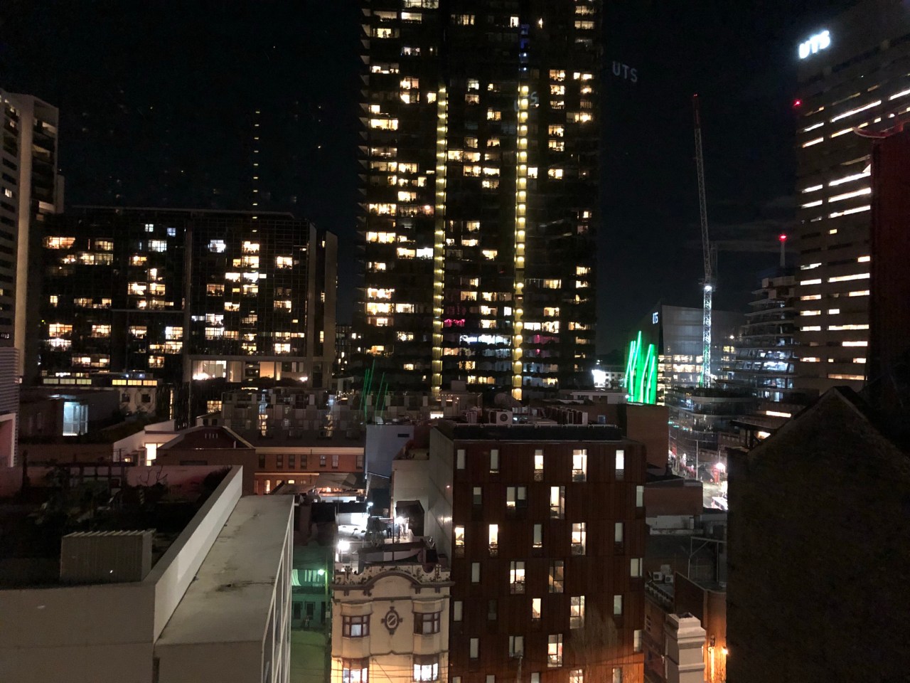 The night lights from our Sydney campsite.