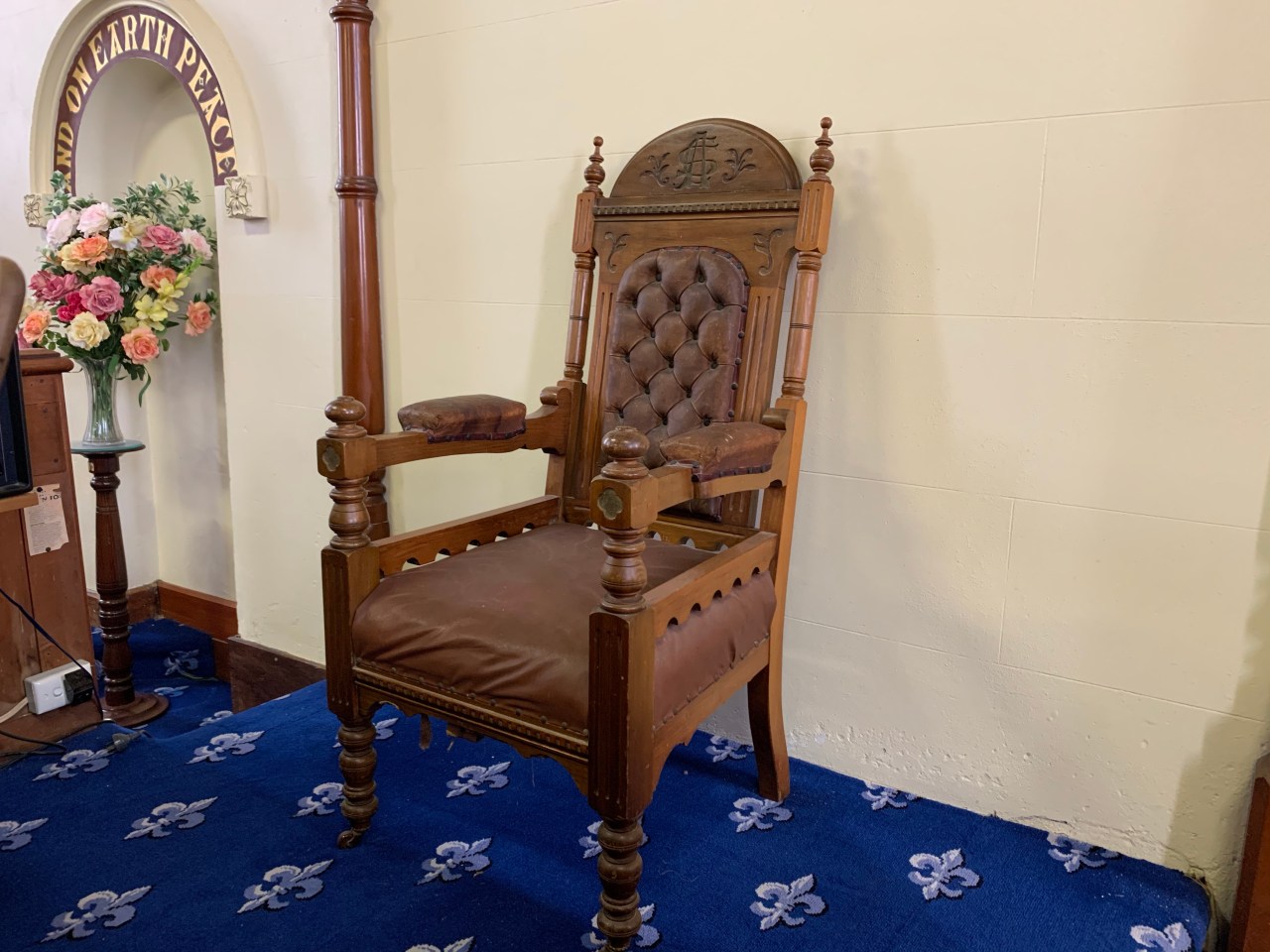 This chair is in the pulpit of the Presbyterian church at Penola.