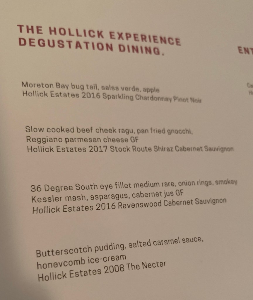 Hollick’s in Penola have a degustation menu. Multiple small serves, matched with complementary drinks. We even had an extra soup course.