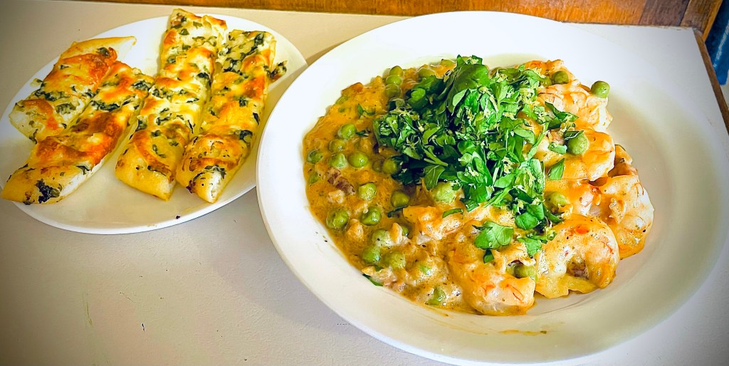 I’ve probably featured this prawn, pea, and lemon risotto before (accompanied by gluten free garlic pizza slices).