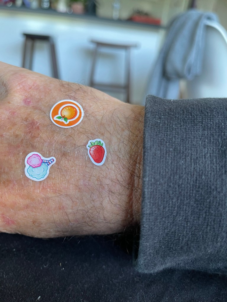 I was awarded three stickers: one for being quiet, another as a sanction consequence because I had cut crust off a slice of pizza, and another as a reward because pizza without crust is alright. Don’t ask me, it’s not my system.