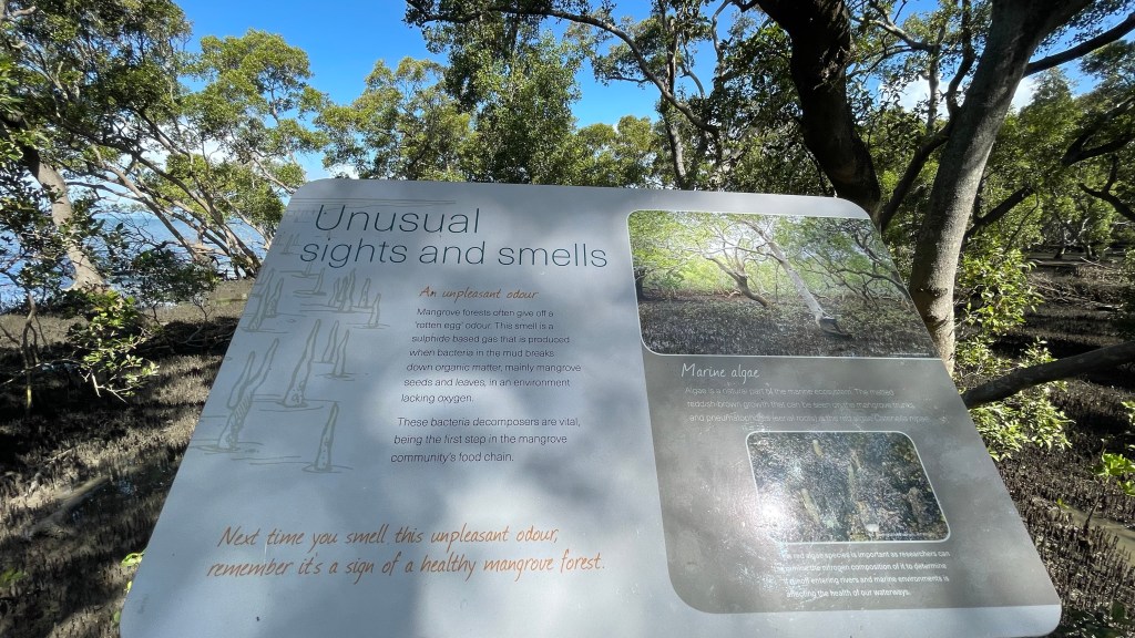 Went on the mangrove boardwalk at Wynnum North today. Mangroves have an unmistakable aroma at low tide. And there was a bush turkey.