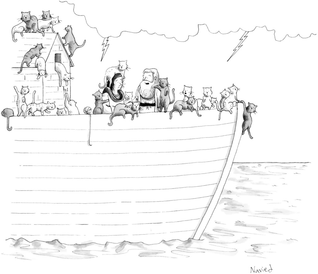 “I decided to just bring cats.”Cartoon by Navied Mahdavian from The New Yorker.