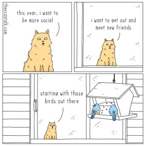 Every time our cat looks out the door or window and sees a bird she crouches and makes this odd little burbling noise.