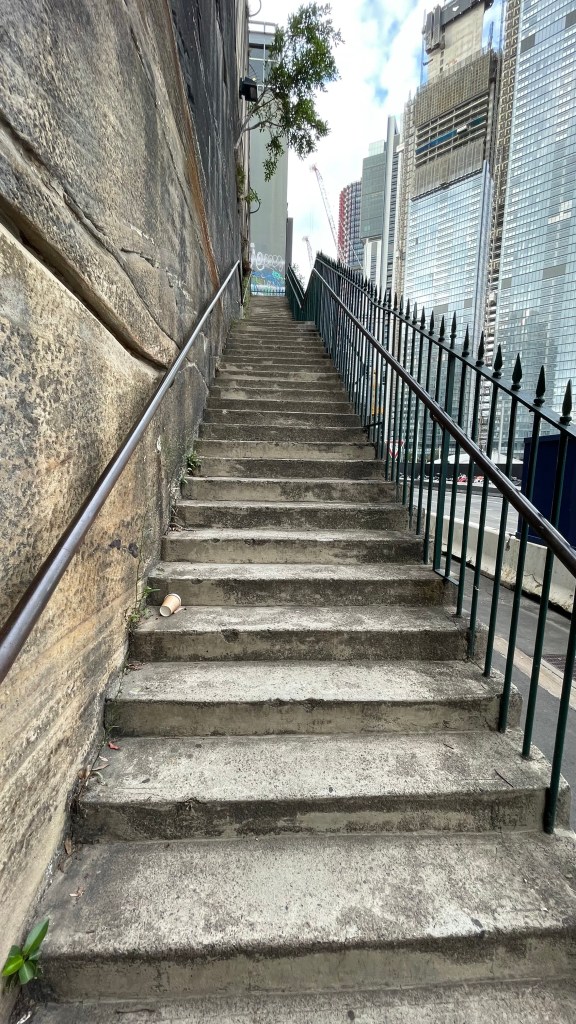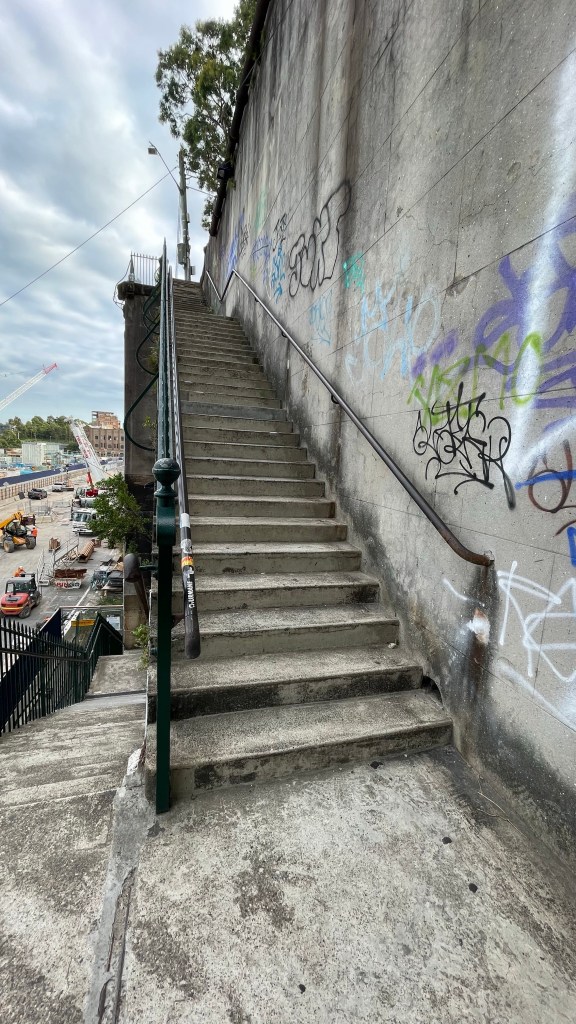 Early morning walking in Sydney resulted in a change due to a footpath closed during construction.
