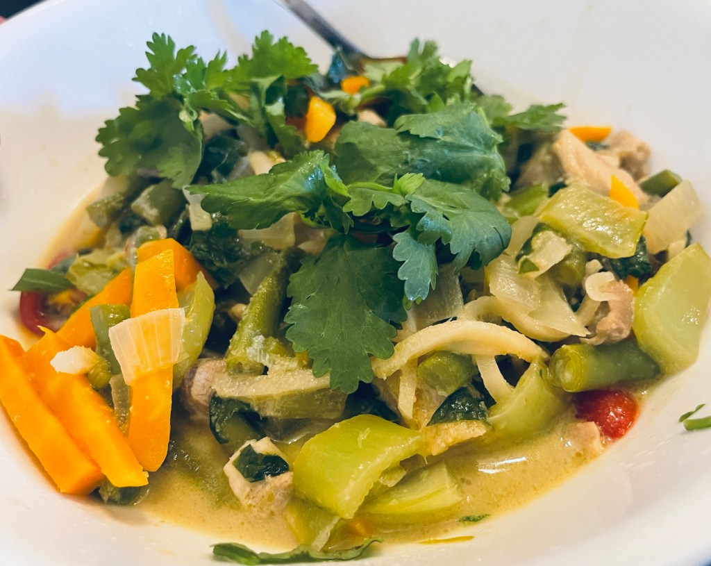 I love this Thai green curry because it’s made to a recipe that doesn’t make Margaret ill, so we can eat it together (while watching Sleepless in Seattle) on Valentine’s Day.