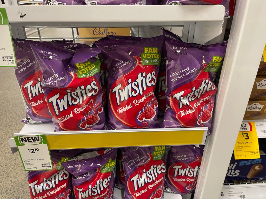 Twisties are meant to be cheese flavoured snacks. Variations like chicken are okay. Chili cheese or peri peri cheese or other cheese variations make some sort of sense.
