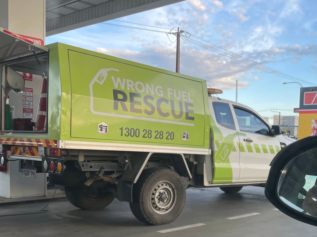 Today we saw this business in operation at Costco fuel in Adelaide. Wrong Fuel Rescue. The name tells it all.